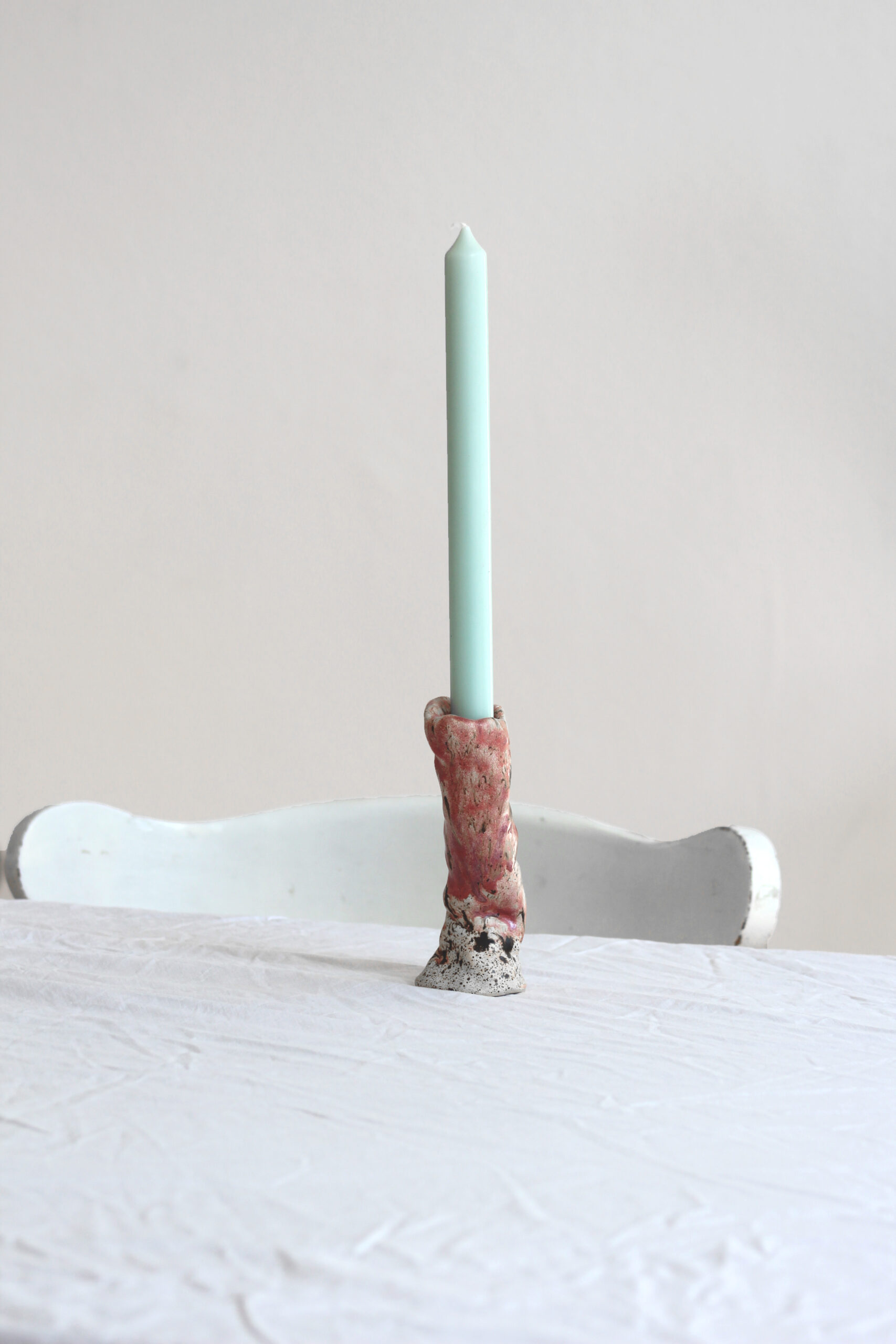 Handmade stoneware candleholder. Hand glazed with timeless colour flows.